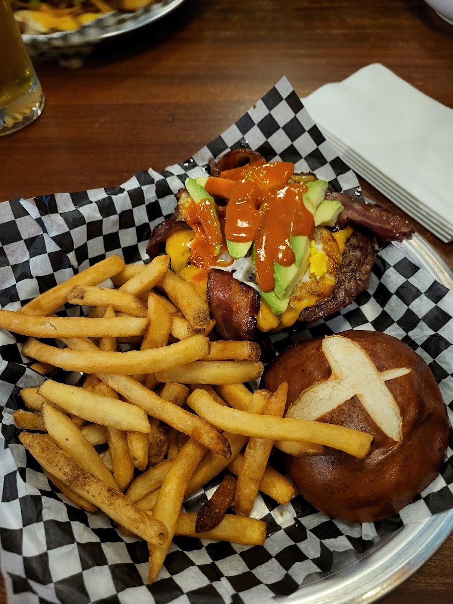 Our go to place for a pretzel when we’re in town. Very fresh and brushed in a buttery glaze. Went back the next morning for a Bloody mary and mimosa. Excellent service both times and friendly staff. Good beer, selection and great atmosphere. Also did the Bears bus which was a nice option. Drinks on the bus and a safe ride to the game. My only suggestion would be for the bus to leave earlier as we got to our seats three minutes before the game. Great place to watch most games as well.