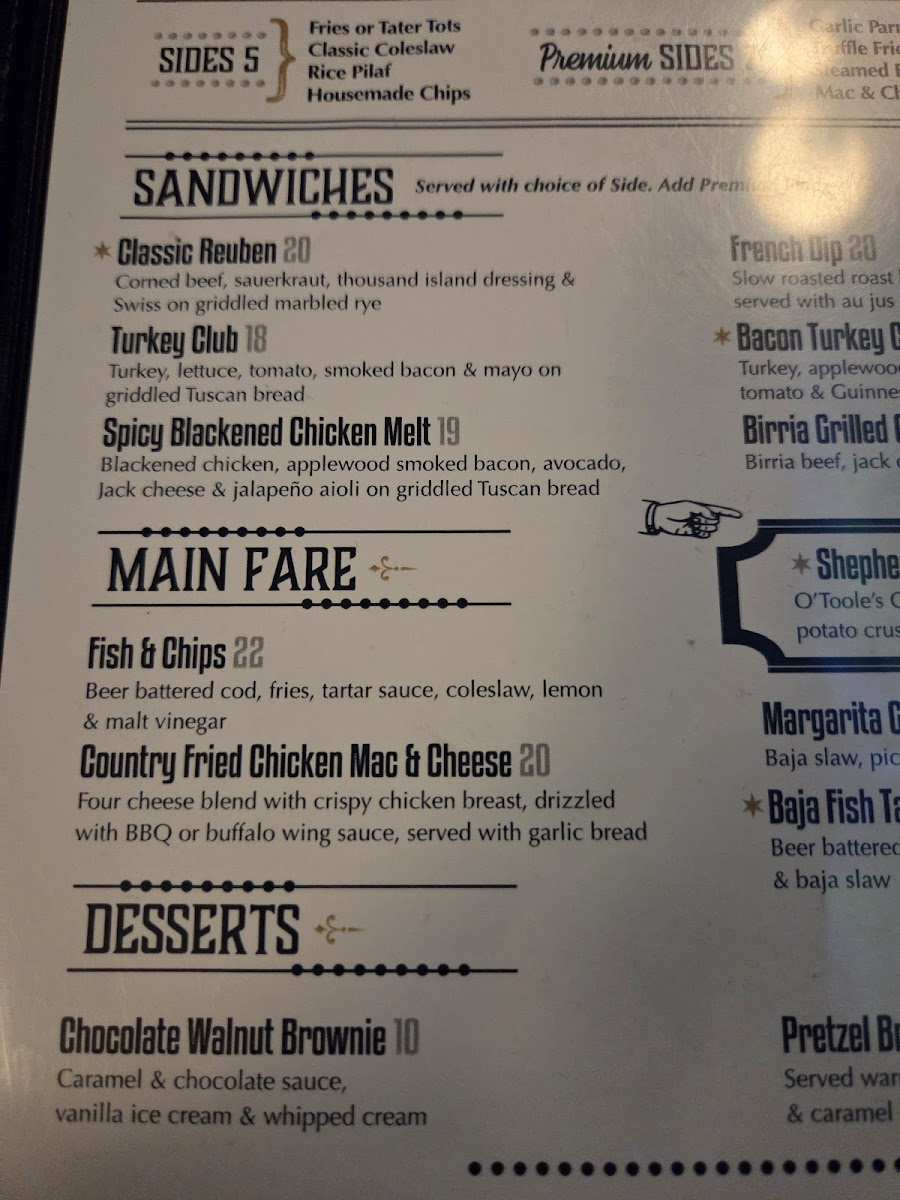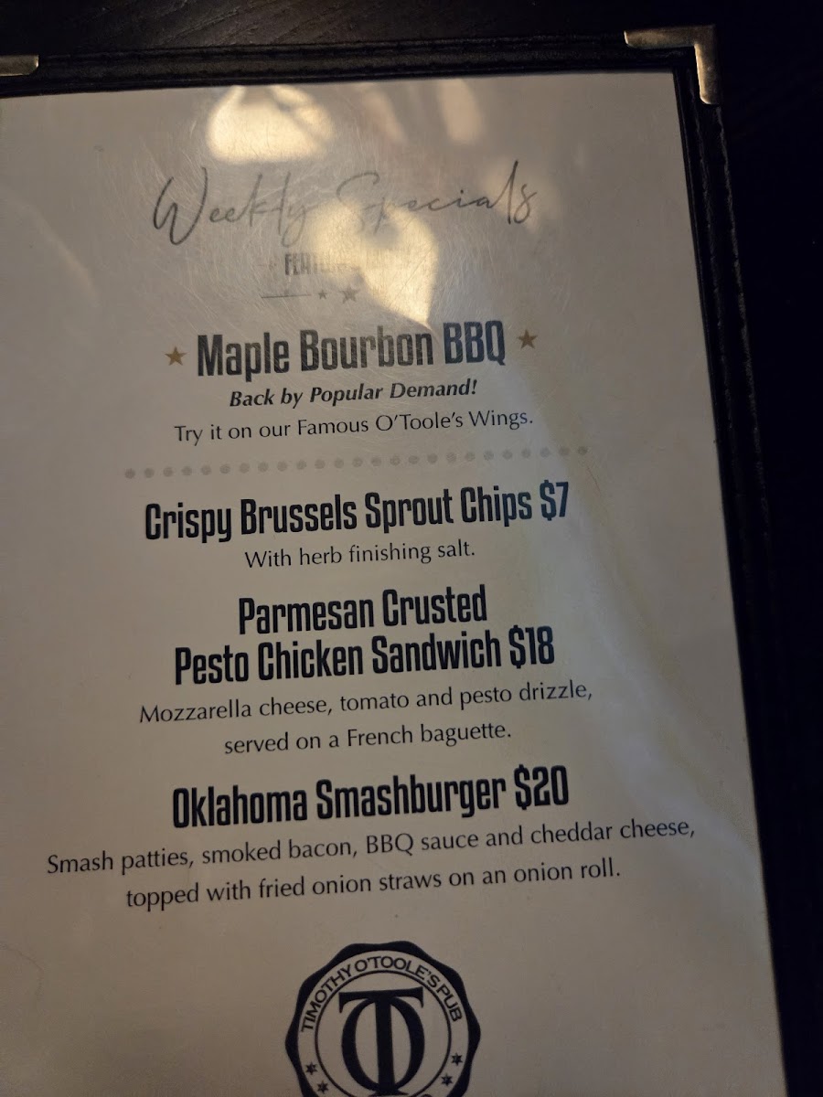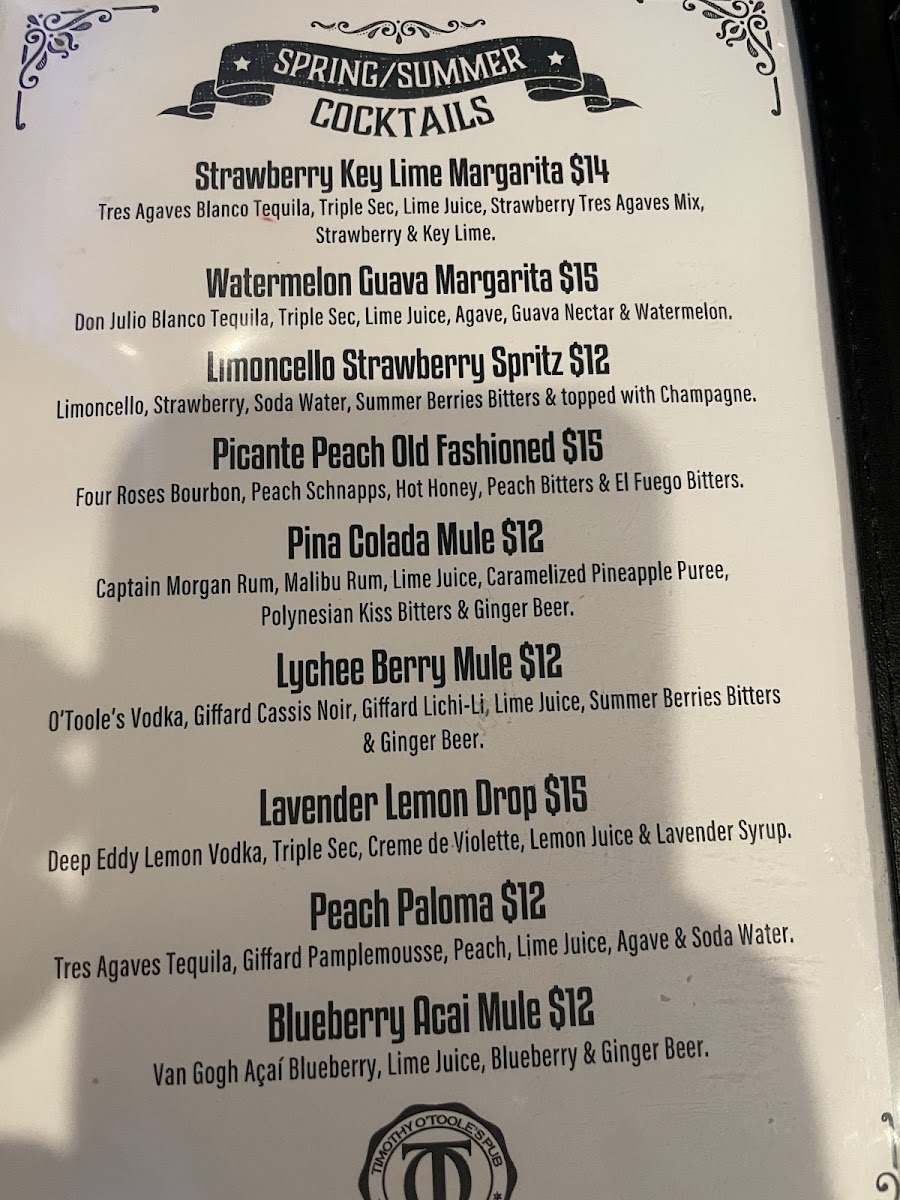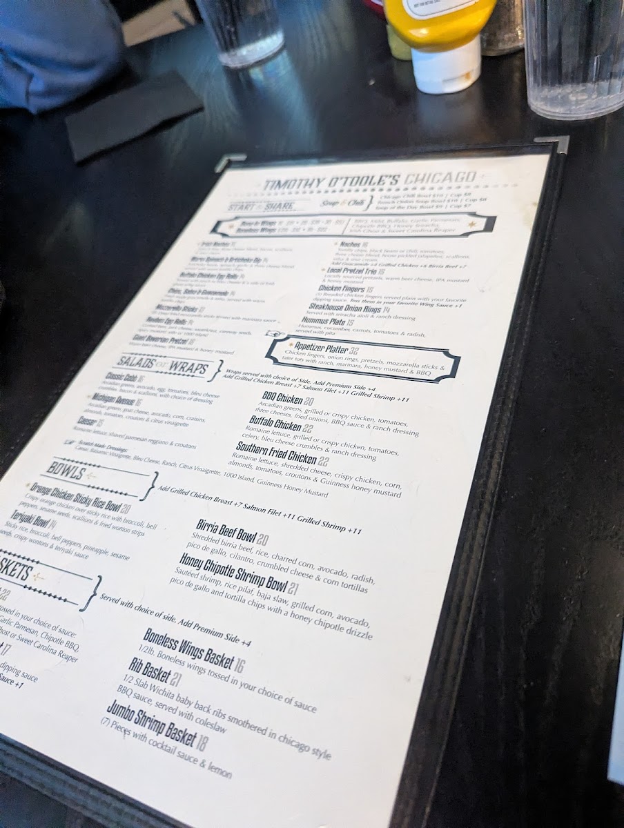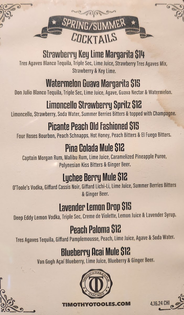 Timothy O'Toole's Pub Chicago Menu